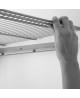 NORSCAN ROLLER with wire shelving system allows for various smart space solutions. Norscan ROLLER shelving system can also be used freestanding. The image shows a silver NORSCAN ROLLER with a silver wire shelving system.