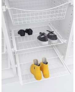 Package: 1pc NORSCAN ROLLER with wire shelving system allows for various smart space solutions. Norscan ROLLER shelving system can also be used freestanding. The picture shows a silver NORSCAN ROLLER with a silver wire shelving system.